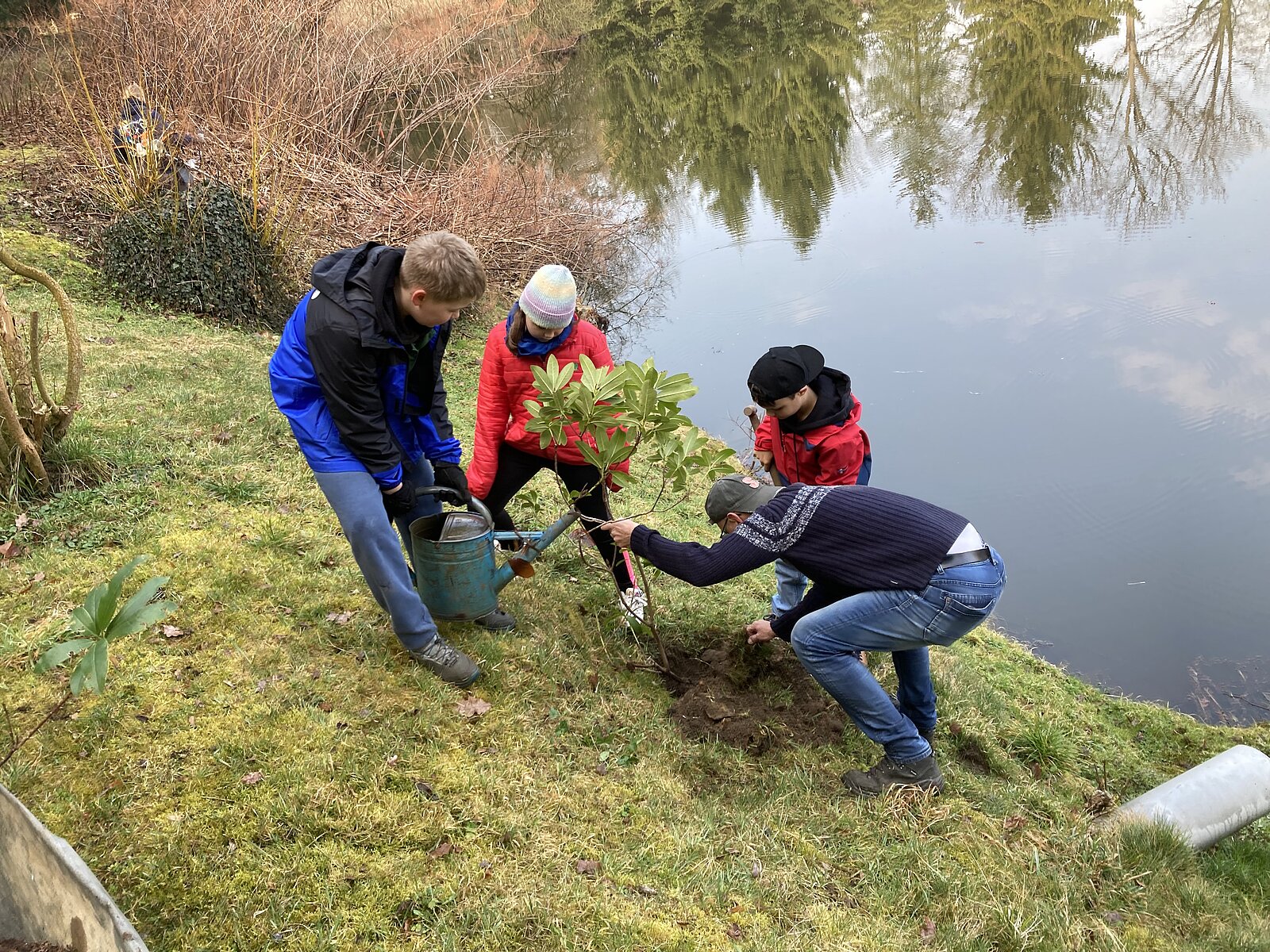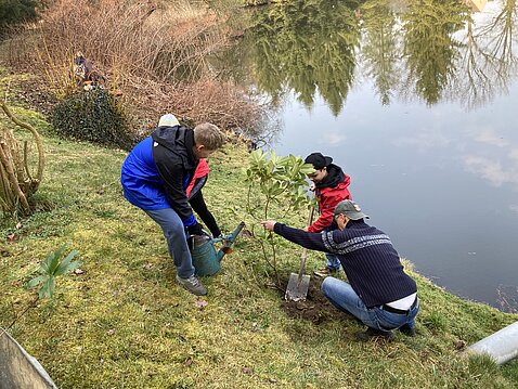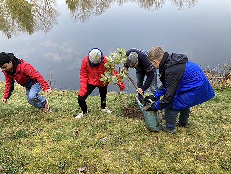 Zur Verschönerung unseres Vereinsgeländes und zur Hangbefestigung pflanzte unsere Jugendgruppe eine Vogelbeerbaum und einige Rhododendronbüsche als erste Aktivität des Jahres. Danach gaben aktive Sportfreunde in einer Theoriestunde so manchen Angeltrick preis und festigten die Kenntnisse in der Fischkunde.